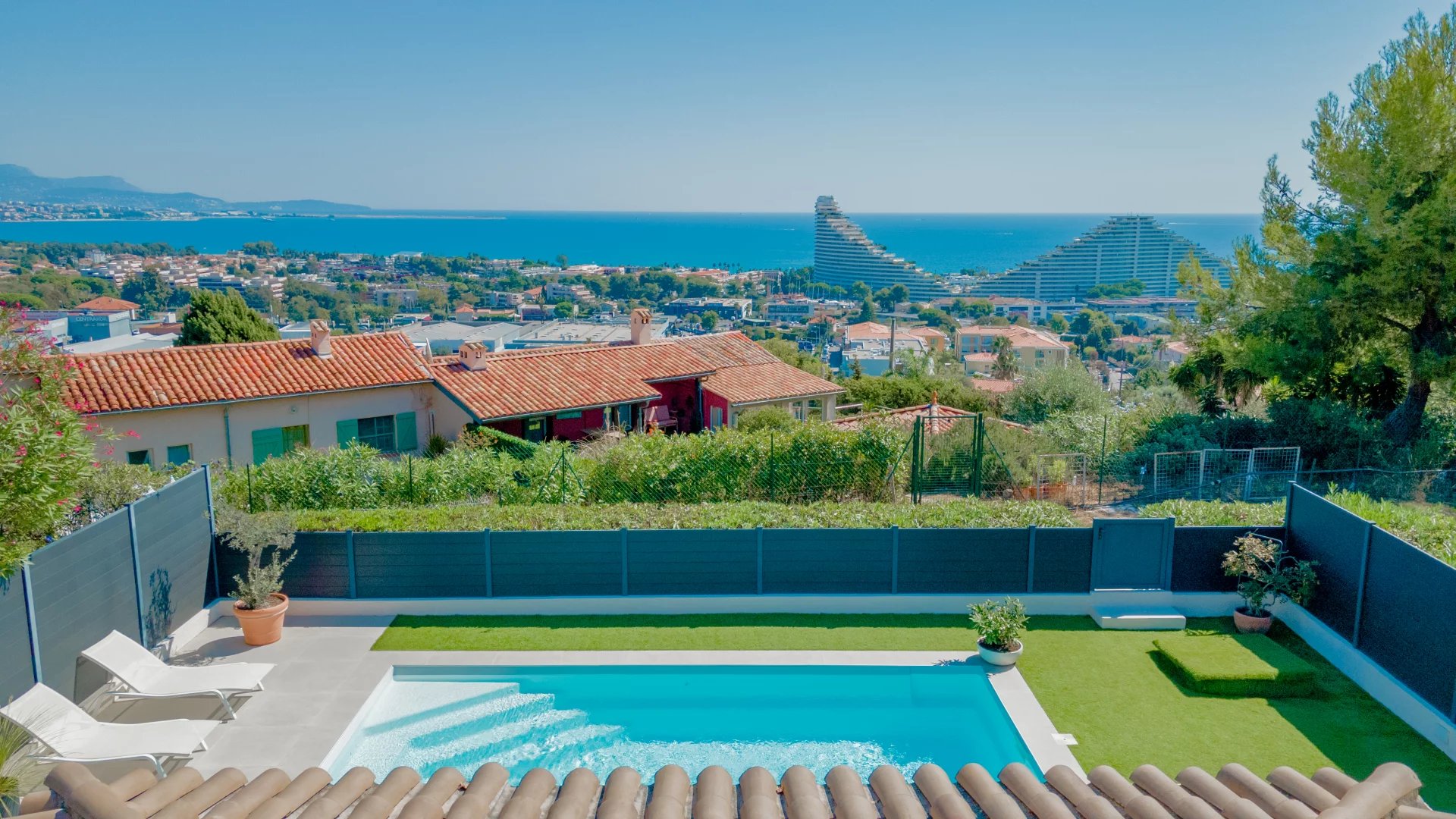 Come and discover this superb, very bright, fully renovated 3-room villa with 200m² garden, swimming pool and fantastic sea views, all with excellent exposure.